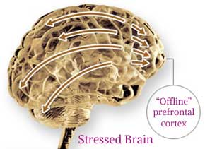 Stress, pressure, fatigue, poor diet, alcohol, and drugs damage neural connections between the brain's prefrontal cortex - or CEO - and the rest of the brain. When you are overtired or under intense mental or physical stress, the brain bypasses its higher, more evolved, rational frontal executive circuits. Consequently, you respond to daily demands without thinking; you make impulsive, shortsighted decisions. When the CEO goes "offline," strong emotions, such as fear and anger, take over, adversely coloring your view of the world.
