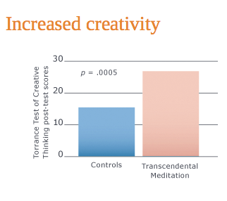 Scientific research shows that individuals who learned Transcendental Meditation showed increased creativity in comparison to controls, as measured by a higher level of pictorial originality when measured after five months of practice.